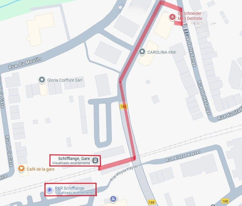 If you are coming by train, the Schifflange Train Station is only a 3 min walk from our office.